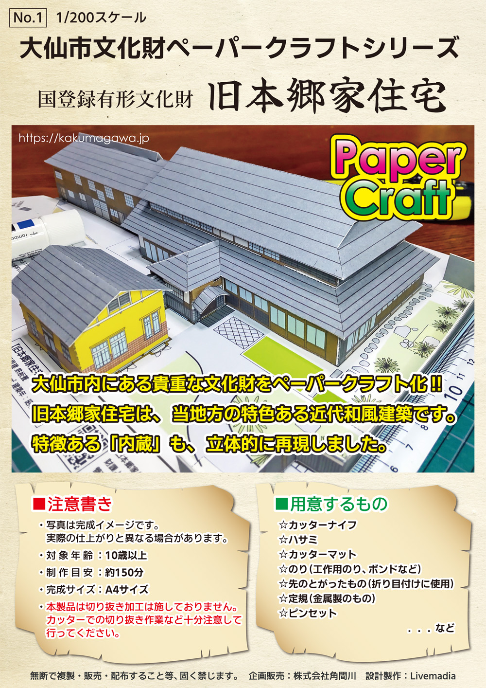 角間川にある国登録有形文化財「旧本郷家住宅」が、精巧なペーパークラフトになりました。 最大の特徴は、この地域ならではの貴重な建築様式「内蔵(うちぐら)」を忠実に再現している点です。
