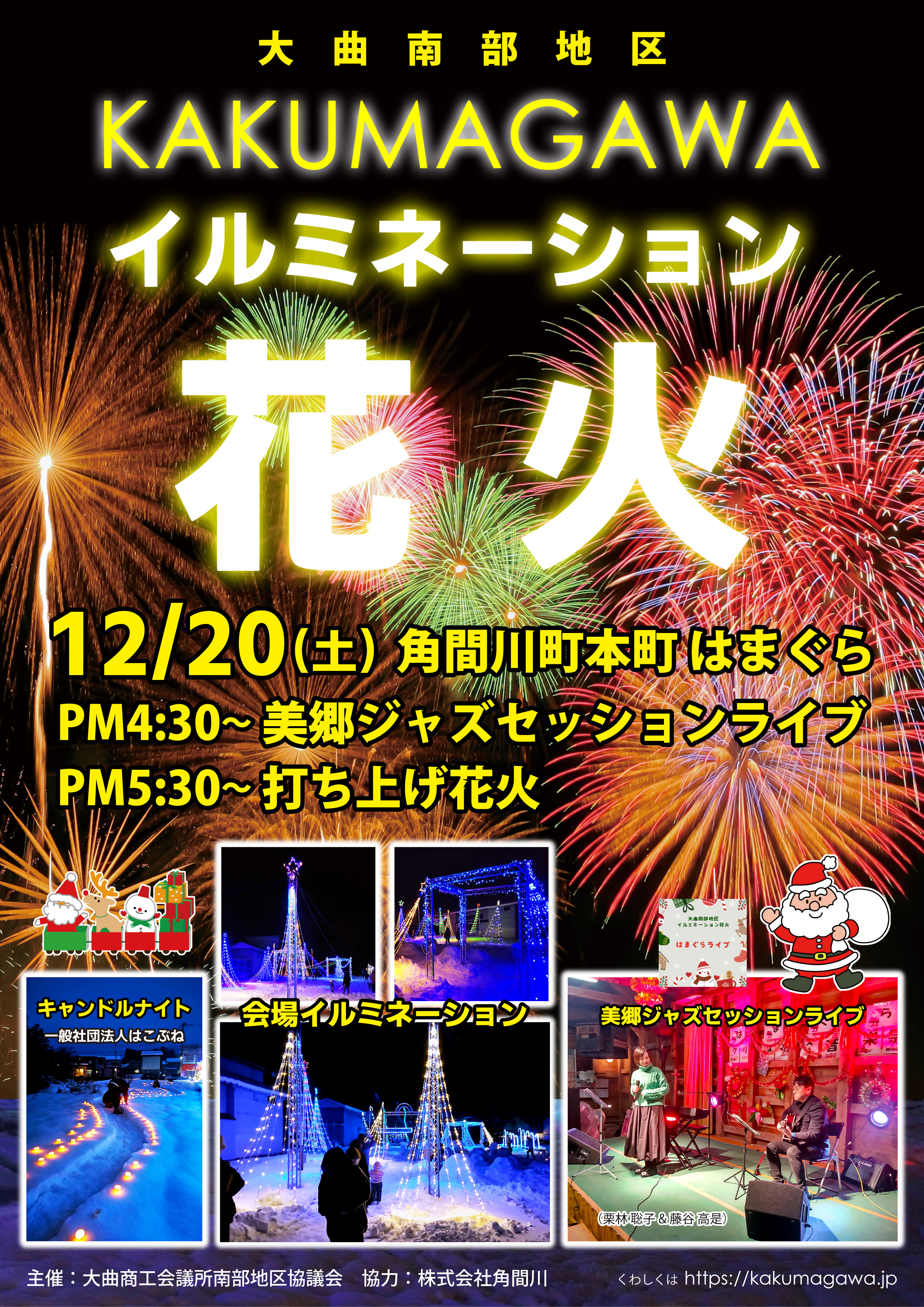 イルミネーションの輝く浜倉の会場のそばから約10分間の間、X'masサウンドと共に500発の花火が打ち上げられます!!