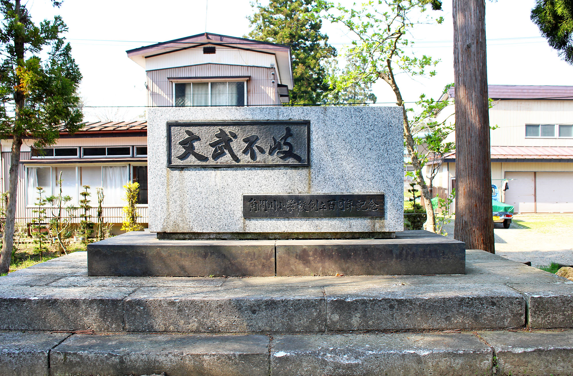 顕彰碑は角間川小学校創立90周年を記念して建立され、現在の角間川児童公園に設置されています。文武不岐記念碑は角間川小学校創立100周年を記念して建立され、角間川小学校の校庭に設置されています。