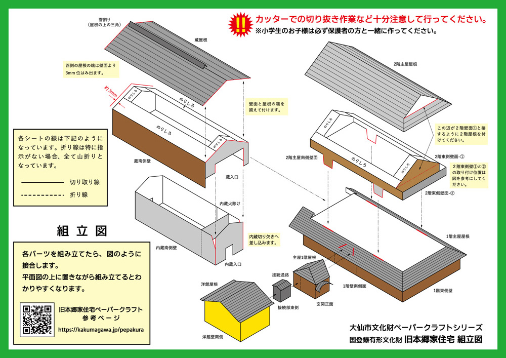 自分用にはもちろん、お子様の学習教材や、見学の思い出としてもおすすめです。ぜひ、あなただけの工夫も凝らしてA4サイズの【ペーパークラフト旧本郷家住宅】を完成させてください。