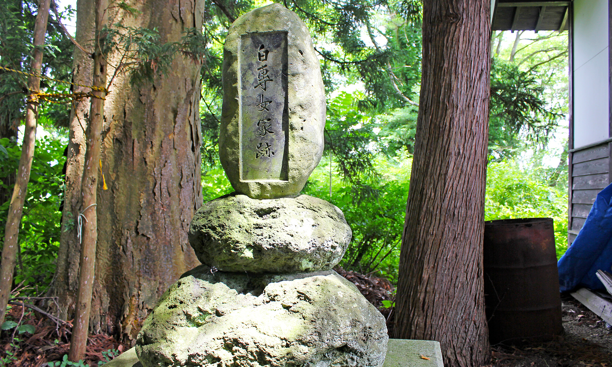 石塚には昭和34年建立と刻まれています。白専女(しらとうめ)は「白狐」のことです。「とうめ」は古い言葉で「老女」または「狐」を意味します。狐を「たうめ」というのは伊勢・伊賀あたりの方言とのことです(学研全訳古語辞典)。白専女家跡というのは、お稲荷さんの脇に狐の住む穴があったのでしょうか。