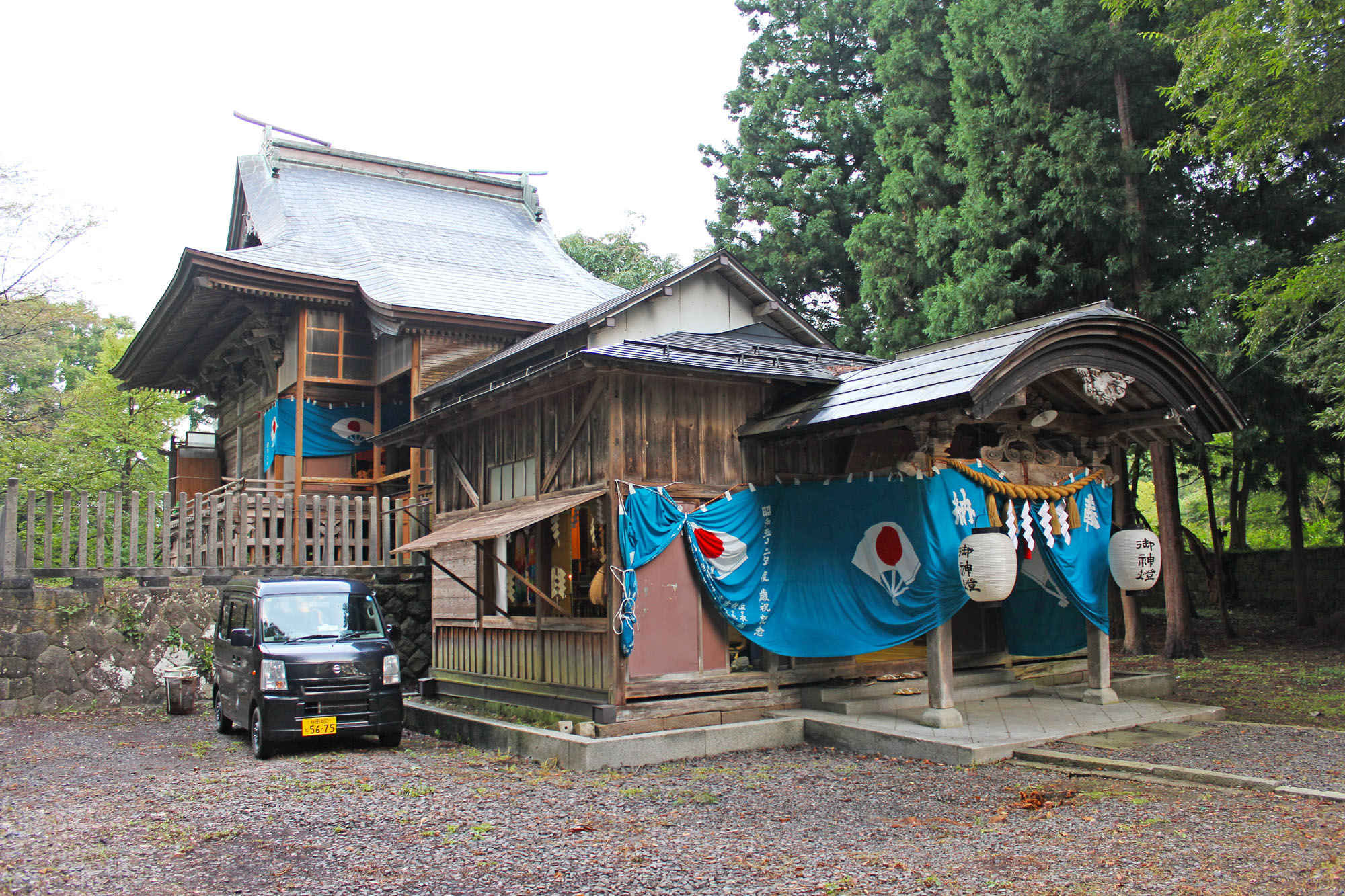 旧社格では郷社でした。明治6年に指定されています。明治11年に本殿を新築し現在地に移転しています。この際にこの場所にあった三吉神社を合祀した様です。明治22年には神明社・西宮神社・豊受神社(七面山の稲荷社?)を合祀しています。角間川の特徴を表すように、農業、産業、商業、漁業など多彩なご祭神がお祀りされています。昭和21年、GHQの神道指令により社格制度は廃止されています。例祭日は8月21日で、神輿が愛宕神社を経由し町内を練り歩きます。2月1日には角間川の厄年を迎えた男女が御祓いを受けます。